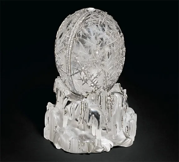 The Imperial Winter Egg is widely regarded as Fabergé’s most artistically original creation. Commissioned by Tsar Nicholas II as an Easter gift for his mother, Dowager Empress Maria Feodorovna, the 1913 piece channels the ethereal fragility of a Russian winter.