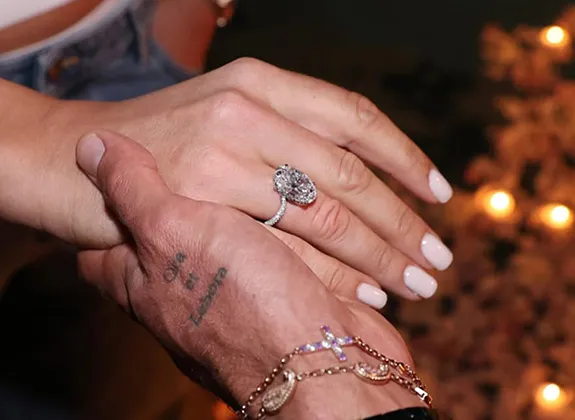 The custom design, created by jeweler Isabela Grutman, centers on an oval-cut diamond weighing more than 12 carats — an impressive gemstone that experts estimate could be worth well over $750,000 depending on its quality. The elongated shape is a favorite among modern brides because it appears larger than many other cuts of the same carat weight and visually elongates the finger.