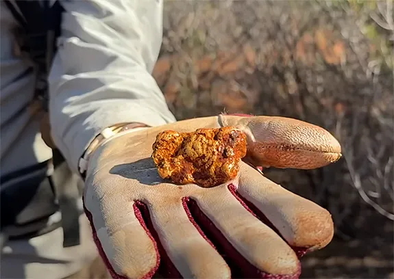 On their third day in the field, Richardson was showing viewers why it’s important to check under bushes, where large nuggets often remain hidden from decades of prospectors. His metal detector gave off what he calls a “screaming” target — the kind of signal that often yields a tin can or other rubbish.