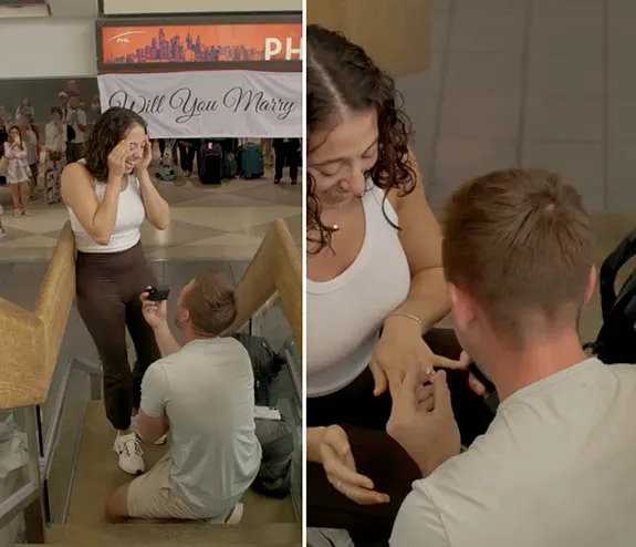 A heartwarming real-life rom-com unfolded at Philadelphia International Airport, where love took off and circled back in a full romantic loop. In late July, on a bustling day at Terminal E, beneath the now-famous “Welcome to Philadelphia” sign, Matthew Brenner got down on one knee and proposed to Lesley Venella with a marquise-cut diamond ring. It was the exact spot where they met by chance more than two years earlier.