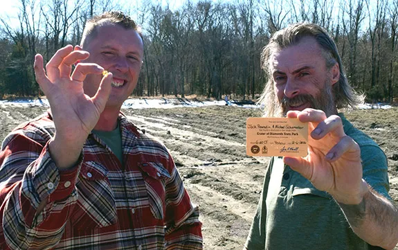 Mining partners Jack Pearadin of Nashville, AR, and Michael Schumacher of Soldiers Grove, WI, are no strangers to success at the park. Between them, the longtime friends have discovered more than 350 diamonds over the years. But nothing compared to what happened during a routine TikTok livestream on January 25.