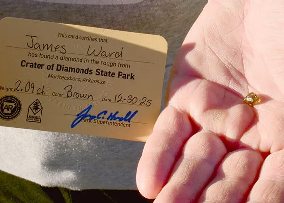 James Ward, a 41-year-old high school teacher from Cypress, TX, uncovered a 2.09-carat yellowish-brown diamond on December 30 while exploring the park with his wife, Elizabeth, and their sons, Adrian (9) and Austin (7). Planning for the unlikely adventure began weeks earlier, in mid-December, during a casual moment at home.