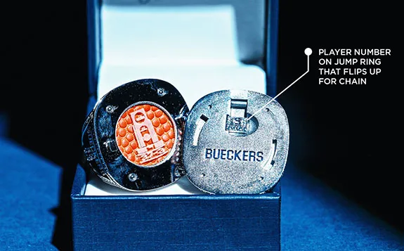 That removable top doesn’t just serve as a secret compartment; it also becomes a wearable pendant, transforming the symbol of team victory into a personal keepsake. Engraved with each player’s name and number, the pendant's jump ring is designed so that Huskies can carry a tangible reminder of their achievement — literally close to the heart.